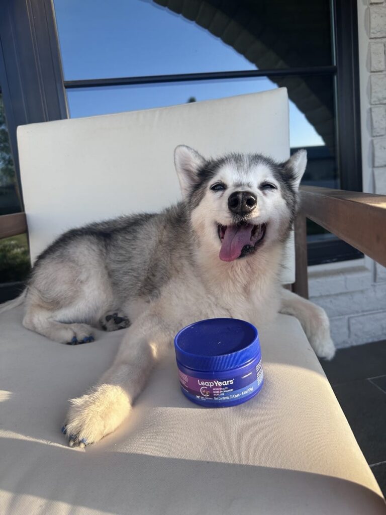 Since starting Leap Years at 15, Gunnar has regained his confidence, and the spark he got back has stayed steady. He’s still really aware of everything going on around him. On walks, he’s the dog who sniffs the most, and he still carries himself like he thinks he’s younger. We’re always surprised when he jumps off our bed in the mornings on his own—it’s quite high, but he just goes for it, no fear!
